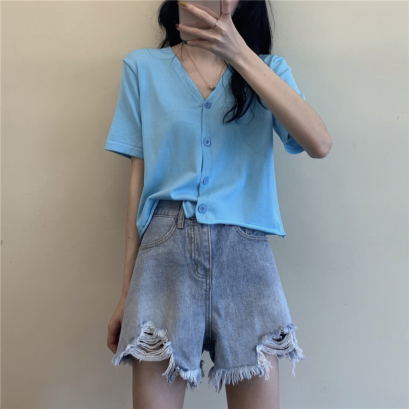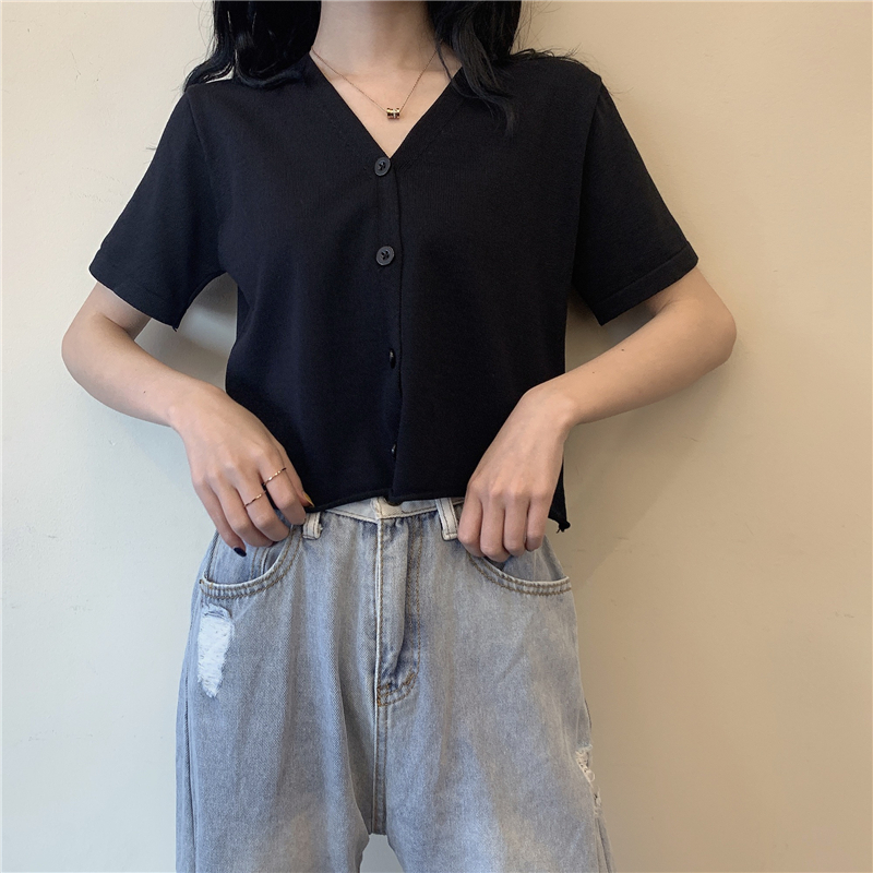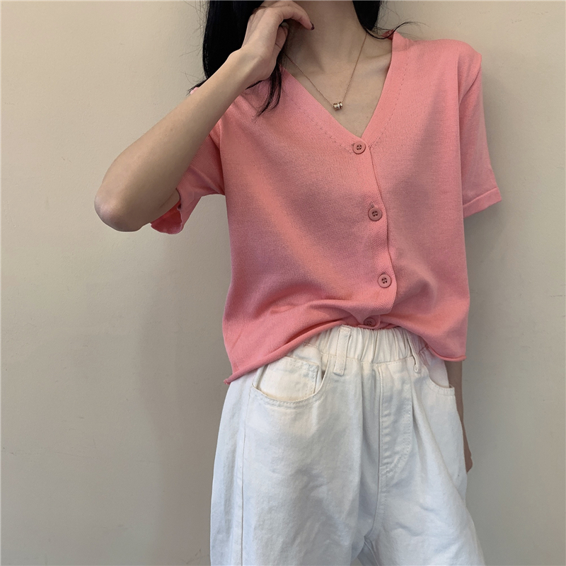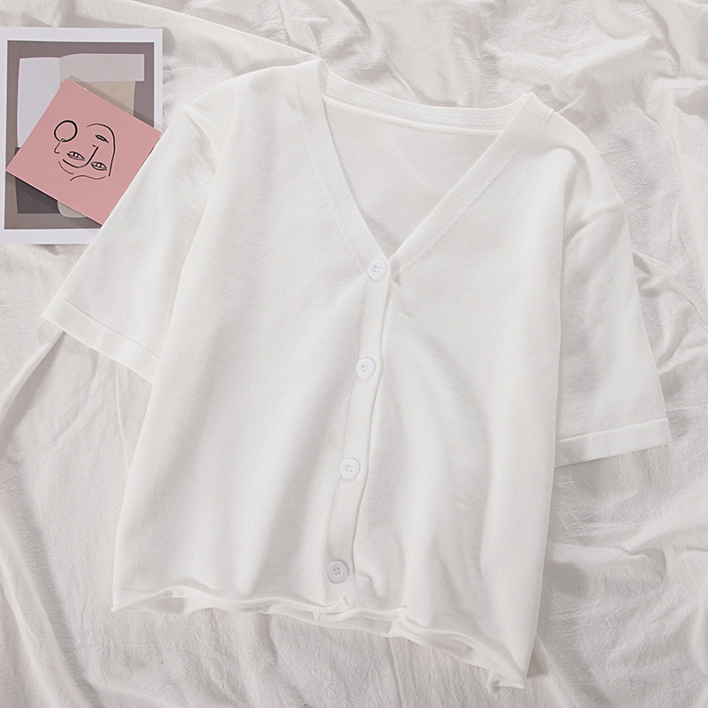 5分钟前氣質v領薄款打底針織衫,2020夏季新款女裝短款開衫上衣 - 【買一送二】任選3件,僅需NT$1098