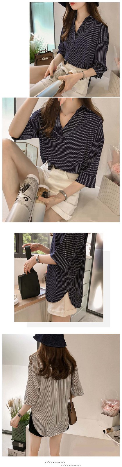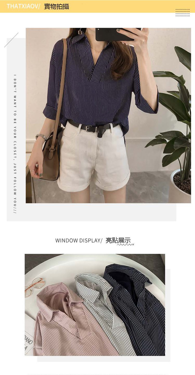 5分钟前新品上市,勁爆特殺!全場大放送,單件低至NT$432,2020新款夏裝中長款韓版寬松顯瘦條紋襯衫女七分袖,廠家直銷,超值優惠,買到賺到!過後漲價! - 【超級氣質條紋襯衫】任選1件 僅需NT$899